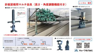 - ハゼ式折板屋根への単管パイプ等の取り付け